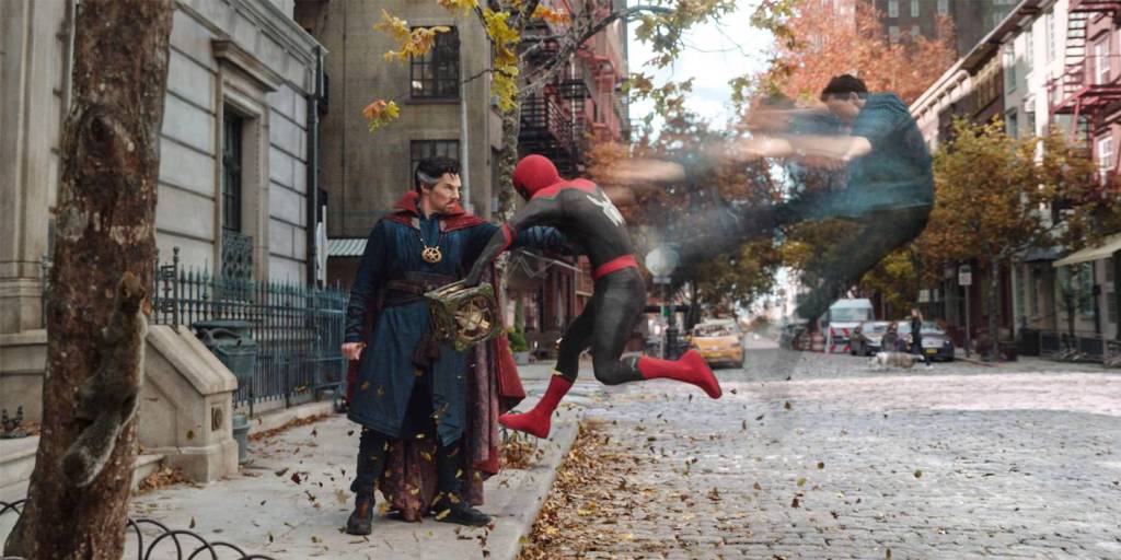 Våre trofaste lesere tror kanskje vi i Spis en film har blitt stormannsgale. Vi har jo bare tradisjon for å anbefale filmer som finnes på strømmetjenester. Når derimot tiårets blockbuster endelig kommer på kino i Norge, så må vi nesten hive oss rundt og passe på at folk går på kino, slik at bransjen overlever i år også. Og det kan jaggu meg se sånn ut at de klarer det også uten oss. Det opplyses nemlig at over 90.000 billetter er forhåndskjøpt til de norske kinovisningene! Ny norsk rekord! Derfor er det på sin plass at også vi omtaler filmen som «alle» har snakket om det siste halvåret, nemlig Spider-Man: No Way Home.