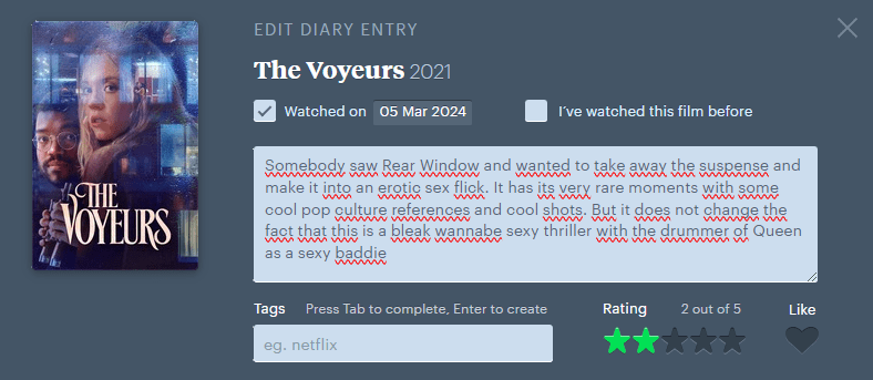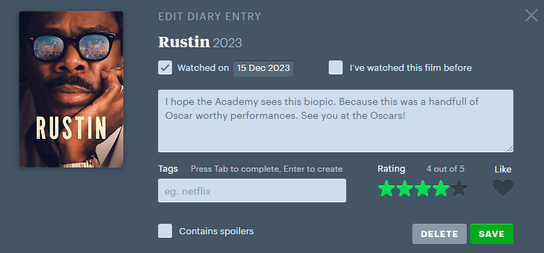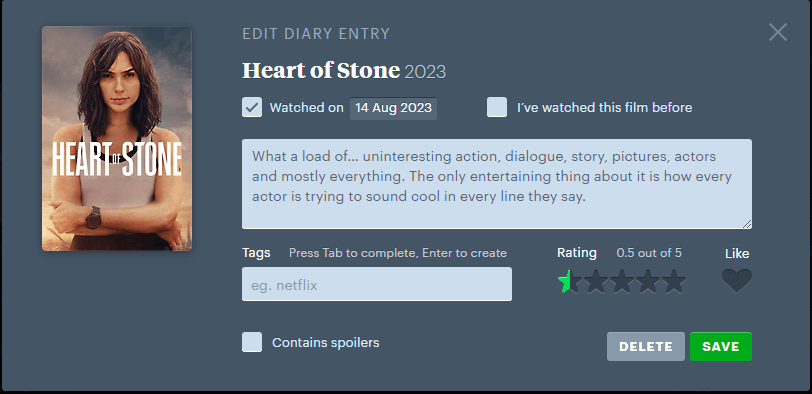 Entusiasmen var så definitivt å spore den dagen jeg fikk tips om filmappen Letterboxd. Endelig fikk man det beste fra både IMDB og Rotten Tomatoes i en og samme app. Og enda litt mer.